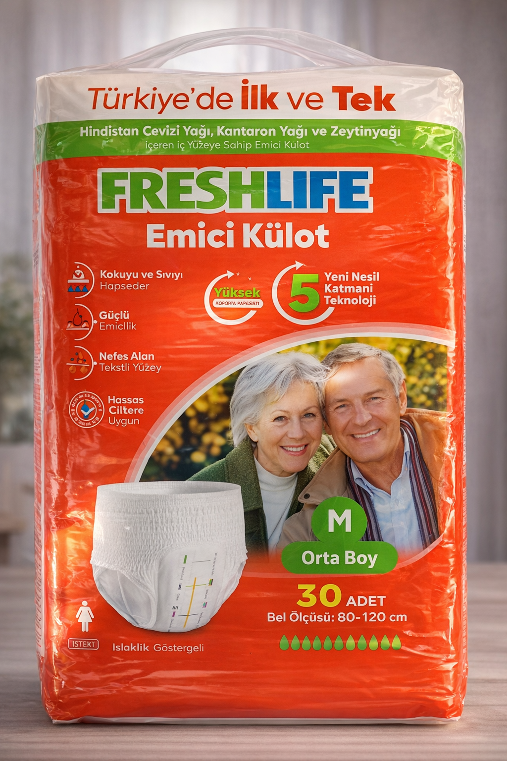 FreshLife Adult Diaper, günlük kullanımda maksimum güven ve rahatlık sağlamak üzere ileri katman teknolojisi ile üretilmiştir.